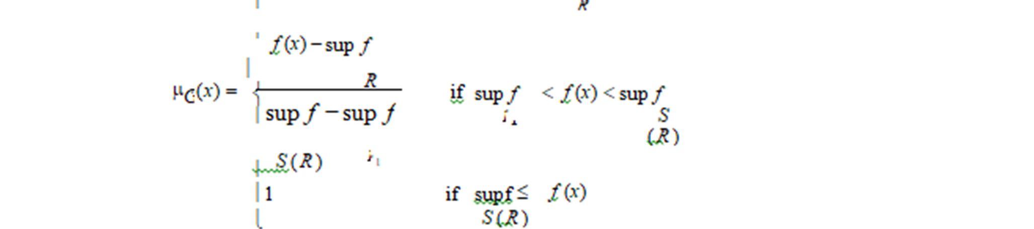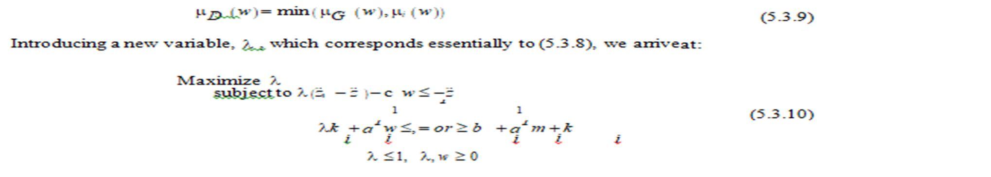 By applying the concept of fuzzy decision set D ~ [see Bellman & Zadeh (1970)], the membership function of D ~ is defined as