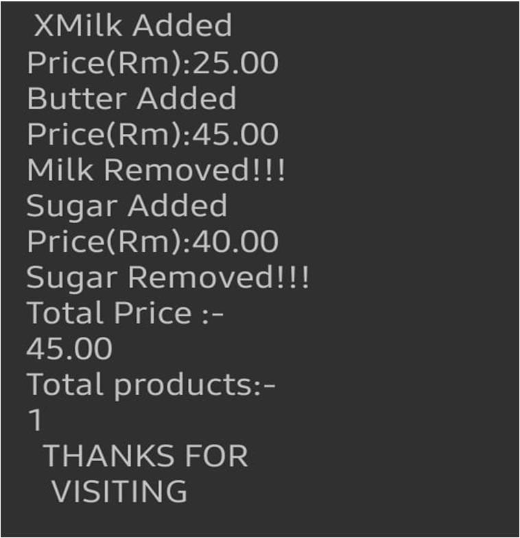 6) Step 6: The total number of products and total amount is displayed along with a thank you message.