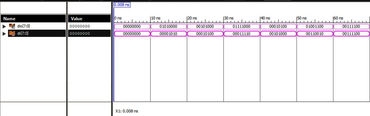 Inverse Bit Order has been obtained for the given input data bit order. Thus, the bit inversion using Inverse Bit Order module inverses the input bit order which leads to inverted bit order for the given input data.