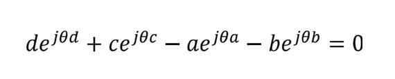 using complex numbers Eq. 1 can be rewritten as: where {a,b,c,d} present the link lengths. Equation 2 can be solved for two unknown parameters,the angular positions of the rocker and coupler . These unknowns are functions of the links length {a,b,c,d} and the angle of the crank θc :