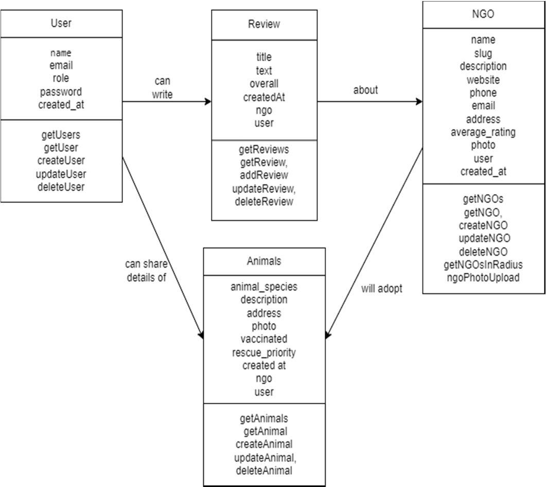 The proposed application is web based, developed using Node.js, Express.js, MongoDB and Postman for documentation. Our documentation will help people to understand the endpoints where data is coming and which calls to make to develop their project. We are acting as a data provider between the client and the ngo user. Ngo will rescue the animal from the user specified location.