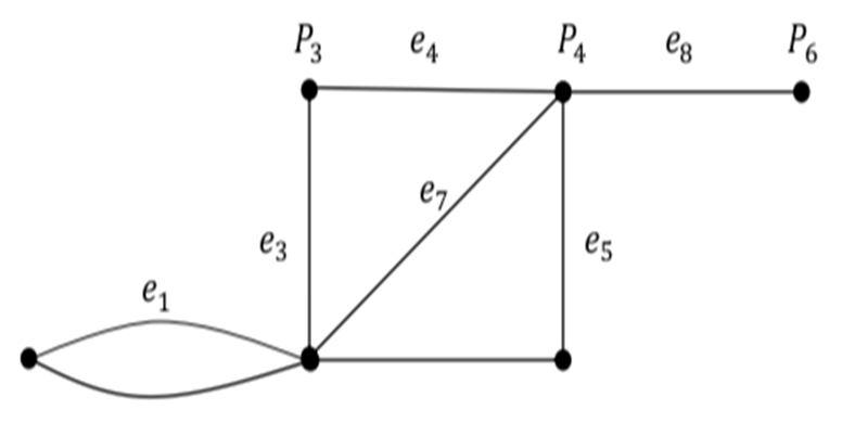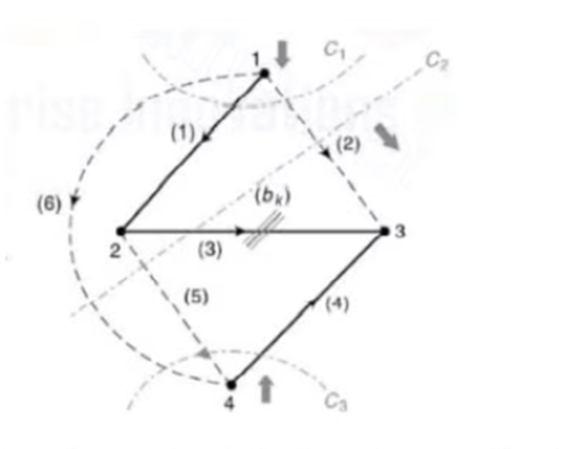 Definition 4. [1] Let G be a graph with m edges and cutsets. The cut set matrix = [ ]× of is a (0,1) matrix with = { 1, ℎ − ℎ , 0, ℎ .