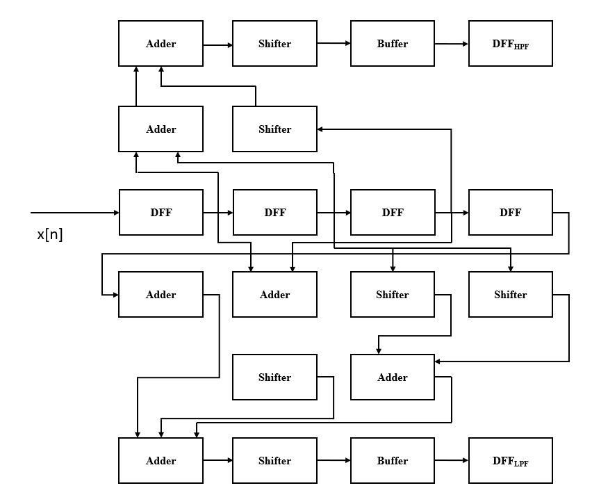 Efficient Architecture for multimodal biometric system for low power system consists of D Flip Flop, Shifter and adder as shown in Fig7. The proposed architecture is designed with carry skip adder as a main datapath block. In the architecture block, x[n] is the input to the architecture and the further steps continues with the Low power FIR filter.