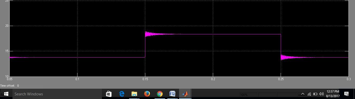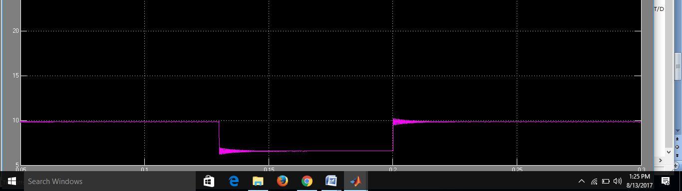 Fig10. Voltage and current across grid Fig11. Voltage and Current of the inverter. 3) Case3: Without wind Voltage and Current Fig12. Output at grid