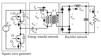 In general, the asymmetric PWM half-bridge converter consists of three stages, as shown in Figure a square wave generator, energy transfer network, and rectifier network.