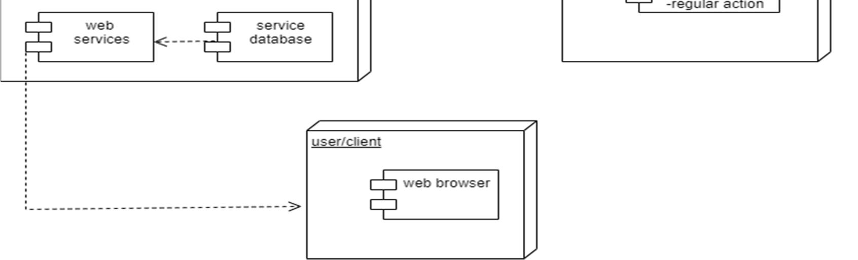 A deployment diagram is a UML diagram type that shows the execution architecture of a system, including nodes such as hardware or software execution environments, and the middleware connecting them. Deployment diagrams are typically used to visualize the physical hardware and software of a system. A line that indicates a message or other type of communication between nodes. Component: A rectangle with two tabs that indicates a software element. Dependency: A dashed line that ends in an arrow, which indicates that one node or component is dependent on another.