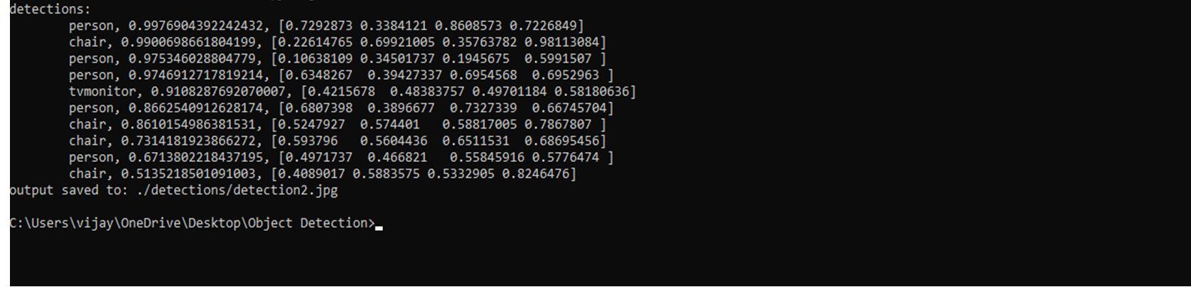 It captures the accuracy of an image as it appears on the screen and verifies while sensing and shows the value of an accurate given by the image as persons,cars,caps with accuracy of 99.81%, 85%, 93.59% depends the captured data.