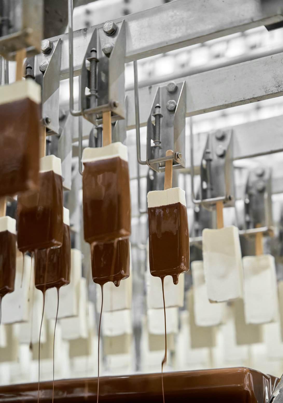 Wir organisieren uns auf die effizienteste Art und Weise, immer mit einem Lächeln und dem Bestreben, jeden Tag besser zu werden. Wir bieten eine breite Palette an Formen (Einzelportionen & Pralinen, extrudierte & geformte Sticks, usw.), eine Vielzahl an Rezepten und Anwendungen (angereichert mit frischer Sahne, vegan, nach amerikanischer Art, mit verschiedenen Stücken, Toppings, Füllungen und Fruchtkomponenten, usw.). Wir machen Eiskreationen visuell und sensorisch attraktiv. Was die Verpackung betrifft, bieten wir viele verschiedene Optionen an, wobei wir stets nachhaltige Lösungen anstreben.