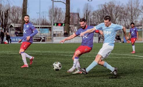 D e Z wer V ers gee F t Z ekere o V erwinning uit HA n D en. De wedstrijd begon en meteen een fel aanvallend De Zwervers. De eerste leuke aanval, met een slim gecreëerde opening gemaakt door Jaimy van de Weg. De bal komt bij Ronnie Pfeffer, maar hij mist de kans. De eerste 10 minuten van de wedstrijd zijn voor De Zwervers en het lijkt er op dat het een kwestie van tijd is om te wachten op de 0-1. Maar na de goede 10 minuten wordt De Zwervers slordiger en De Egelantier Boys maakt daar slim gebruik van. Er wordt hard gewerkt en soms zijn de duels aan beide zijden fel en hard. Op het moment dat De Zwervers zich weer enigszins herpakt komt er een tegenaanval waaruit een hoekschop ontstaat. Uit deze hoekschop wordt gescoord, want een geheel vrijstaande speler van De Egelantier Boys kan de bal zo in het doel koppen: 1-0. Na het openingsdoelpunt van de thuisploeg blijven beide teams soms slordig en matig, maar soms ook leuk en goed spelen. Het spel gaat dus over en weer. In minuut 25 komt er vanaf links op ruim 30 meter van het doel een situatie waarbij Daniël Esajas de bal richting doel schiet. Dit schot, een rollertje, wordt door Jan en alleman gemist en ook niet aangeraakt door de ingelopen Ronnie die slim over de bal heen springt. Tergend langzaam rolt de bal in het doel: 1-1. De Egelantier Boys protesteren want ze hebben gezien dat de bal toch is aangeraakt en dan zou het buitenspel zijn geweest, maar de scheidsrechter blijft bij zijn besluit en keurt het doelpunt goed. Er is geen VAR aanwezig. Na de gelijkmaker zijn er mogelijkheden en kansen over en weer en de grootste ontstaat uit een scrimmage voor het doel van de thuisploeg. Ook Justin Poulisse moet een paar keer goed uit zijn doel komen en handelend optreden en hij houdt de stand vooralsnog gelijk. In de blessuretijd wordt Ronnie Pfeffer ten val gebracht in het strafschopgebied. De Zwervers krijgt een strafschop. Jaimy neemt de strafschop en kan De Zwervers net voor de rust op voorsprong schieten. Maar de linkerpaal staat in de weg en voorkomt de voorsprong.