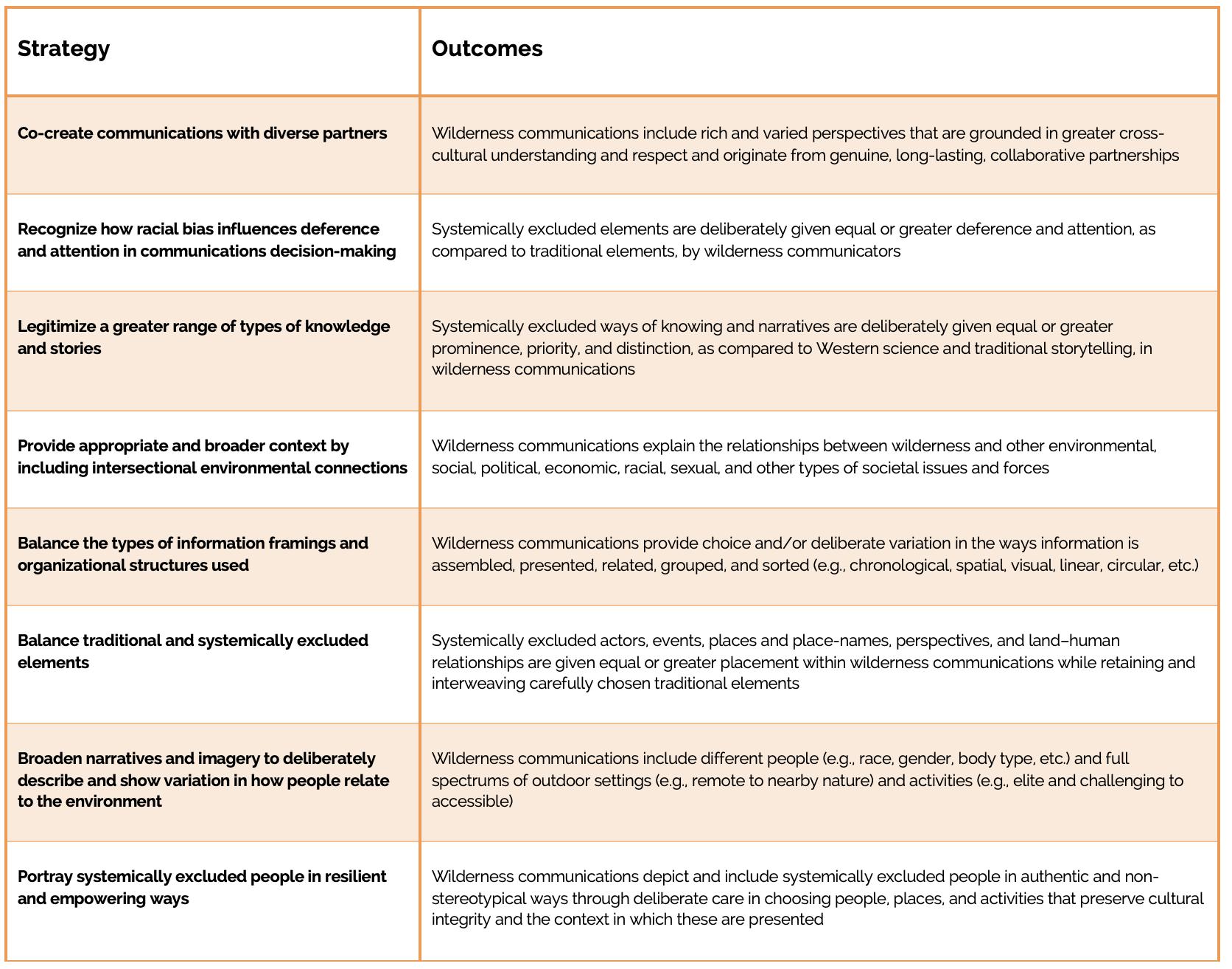 The purpose of this article is to identify communications barriers, explain why certain language and concepts specific to wilderness may privilege some individuals or groups while excluding others, and suggest strategies for producing more inclusive communications materials. To address this purpose, we describe how and why a Wilderness Inclusivity Review Committee of individuals with systemically excluded identity characteristics was formed to conduct an audit of wilderness communications that we refer to as a reflective assessment. Through this assessment, we present diverse interpretations of key aspects of wilderness and how they are communicated.