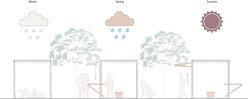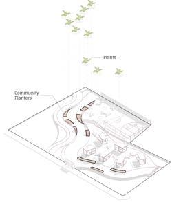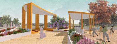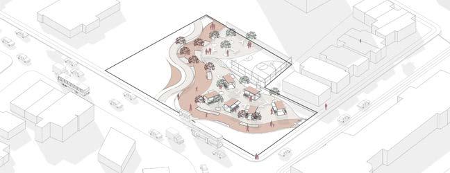 This area utilizes the existing canopy structures but redistributes them along the established desire lines. In addition, it introduces outdoor sports facilities. It is intended for families within the resident community.