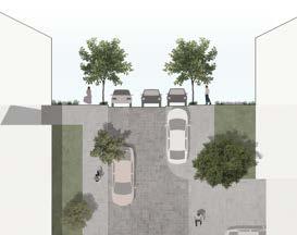 All streets use a mixture of infiltration and water retention to manage stormwater, however, main streets feature boulevards that collect water through their shape while the others have gutters.