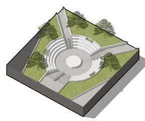 This area introduces an inset amphitheatre at the junction between the soft scpae and the hardscape. It is intended to be utilized by Carleton students as well as residents for public cultural performances and festivals.