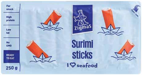 Atšaldytos krabų skonio lazdelės iš surimio ZIGMAS 250 g, 2,99 Eur/vnt.