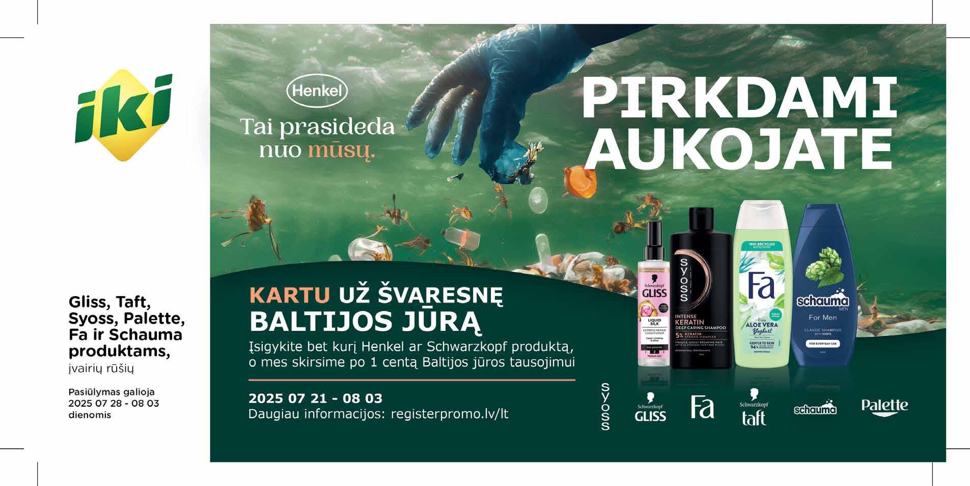 *Leidinyje nurodyta kilogramo ar litro kaina galioja tik perkant prekę su IKI lojalumo kortele. Prekių kiekis ribotas. Kai kurios prekės gali būti išparduotos pirmąją pasiūlymo dieną arba atsirasti kitų kliūčių, nepriklausomų nuo IKI valios, kada baigsis prekių atsargos. Nuolaidos nesumuojamos. Nuolaidos netaikomos CLEVER, HEBĖ, DOUCEUR prekių ženklu pažymėtoms prekėms, išskyrus CLEVER daržoves, akcijų ir išpardavimo prekėms, IKI GO! parduotuvėse. Skirtingose parduotuvėse (IKI, IKI Express) prekių ir jų rūšių skaičius gali skirtis. IKI Express parduotuvių kainolapiuose įprasta prekės kaina, ir/ar procentinis akcijos, ir/ar ar sutaupymo dydis gali skirtis nuo leidinyje nurodytų, tačiau galutinė prekės kaina atitiks šio leidinio pasiūlymus, taikomus IKI Express parduotuvėse. Jei leidinyje kainos ar kita informacija apie prekes nesutampa su pateikta parduotuvėse, prašome leidinyje nurodytas kainas ir informaciją laikyti spaudos klaida. Mieli pirkėjai, mums svarbi Jūsų nuomonė bei pasiūlymai! Nemokama infolinija 0 800 11 454 (visą parą),