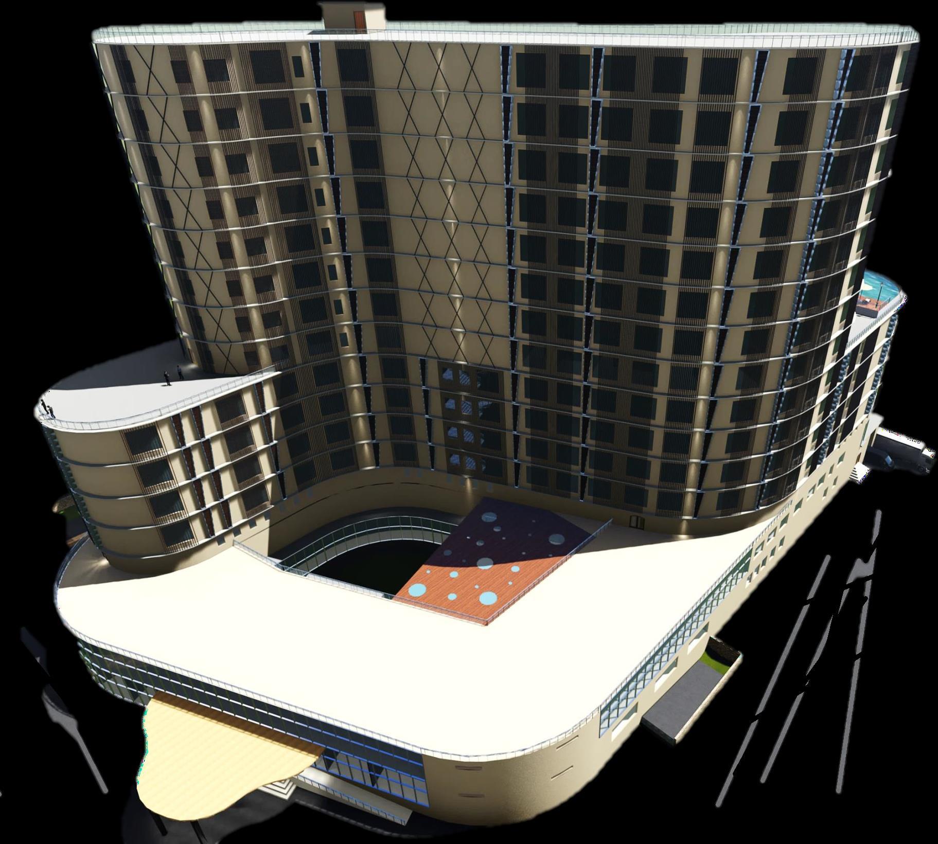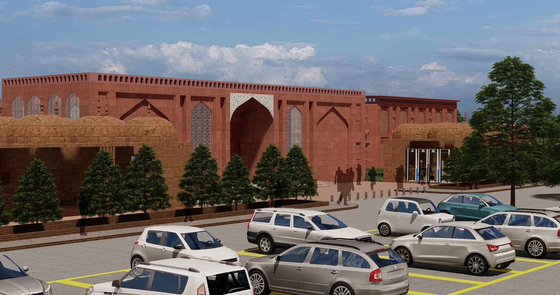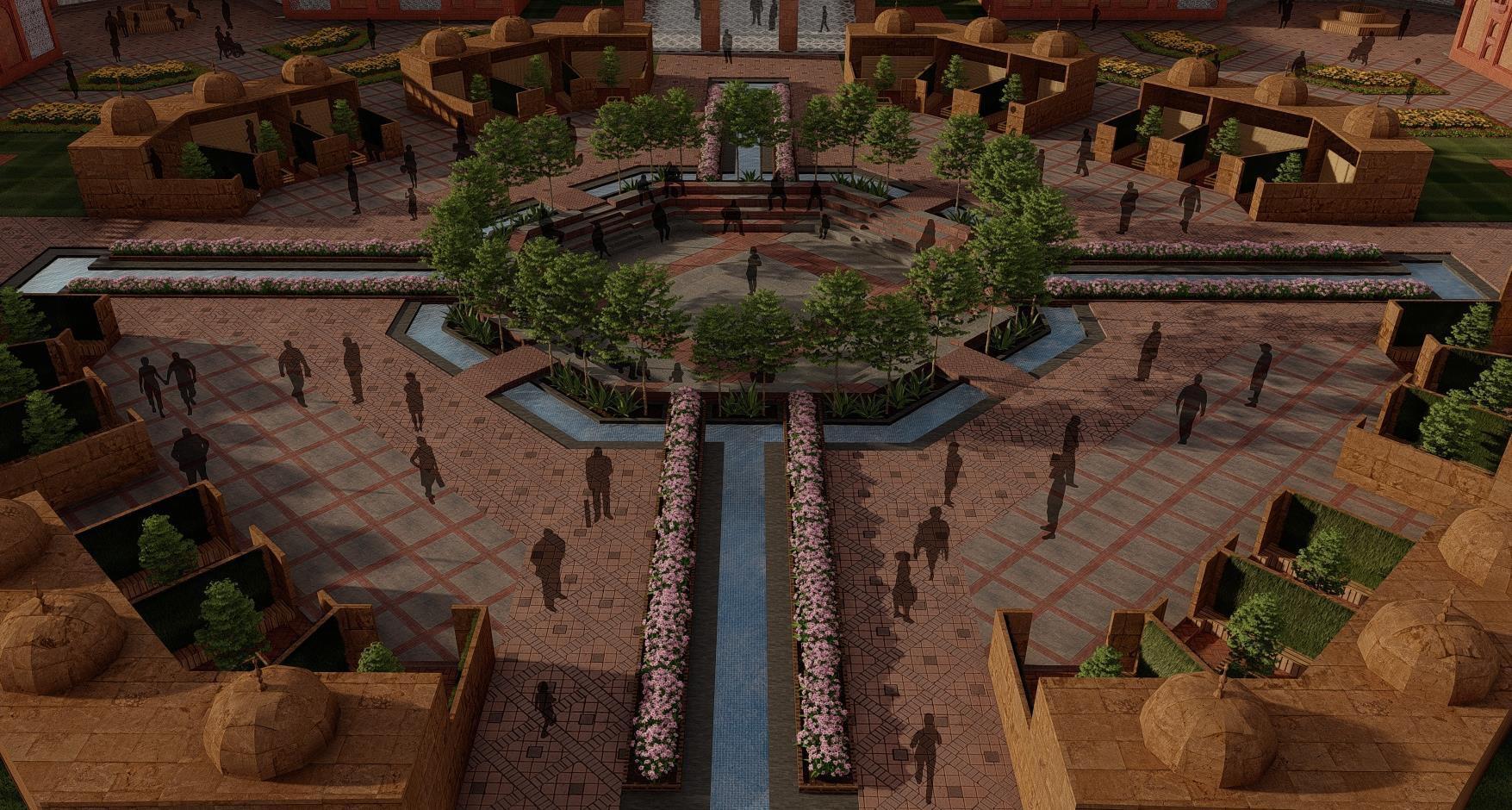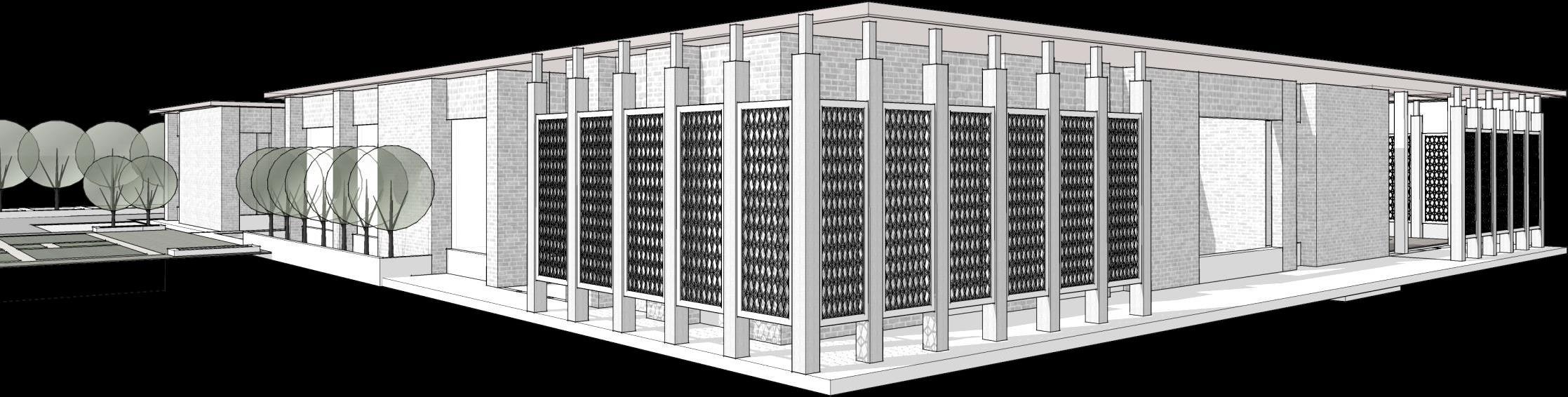 Recreational centre has been designed along with essential cultural site by introducing Mughal elements and it's composition showing it's principle of balance & symmetry with geometric patterns.