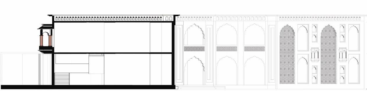 The arch, being an important element of the Mughal Architecture, is introduced as a skin to the face of the buildings