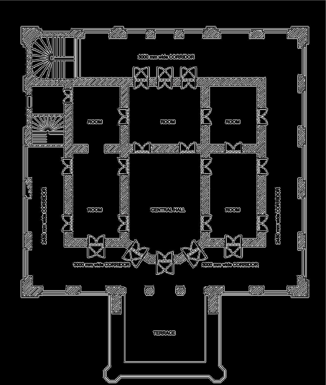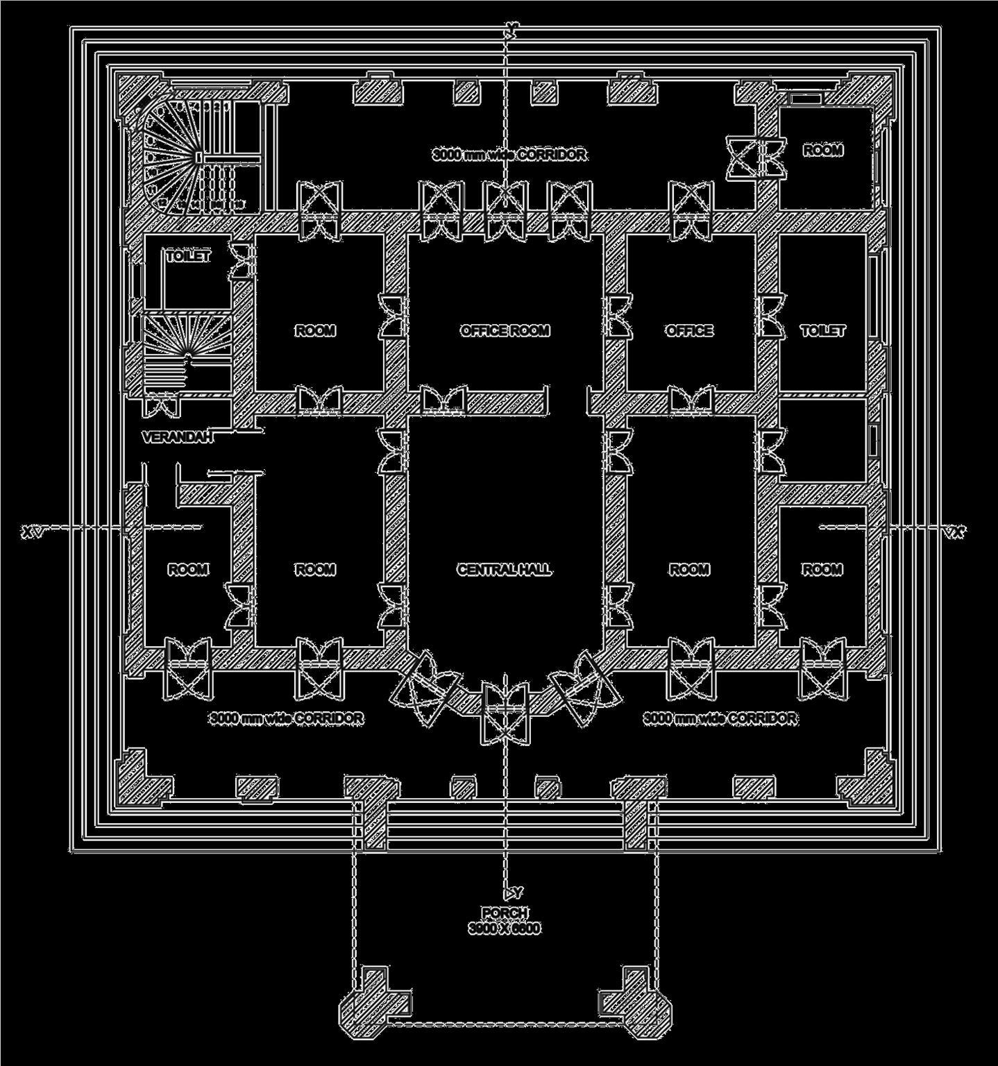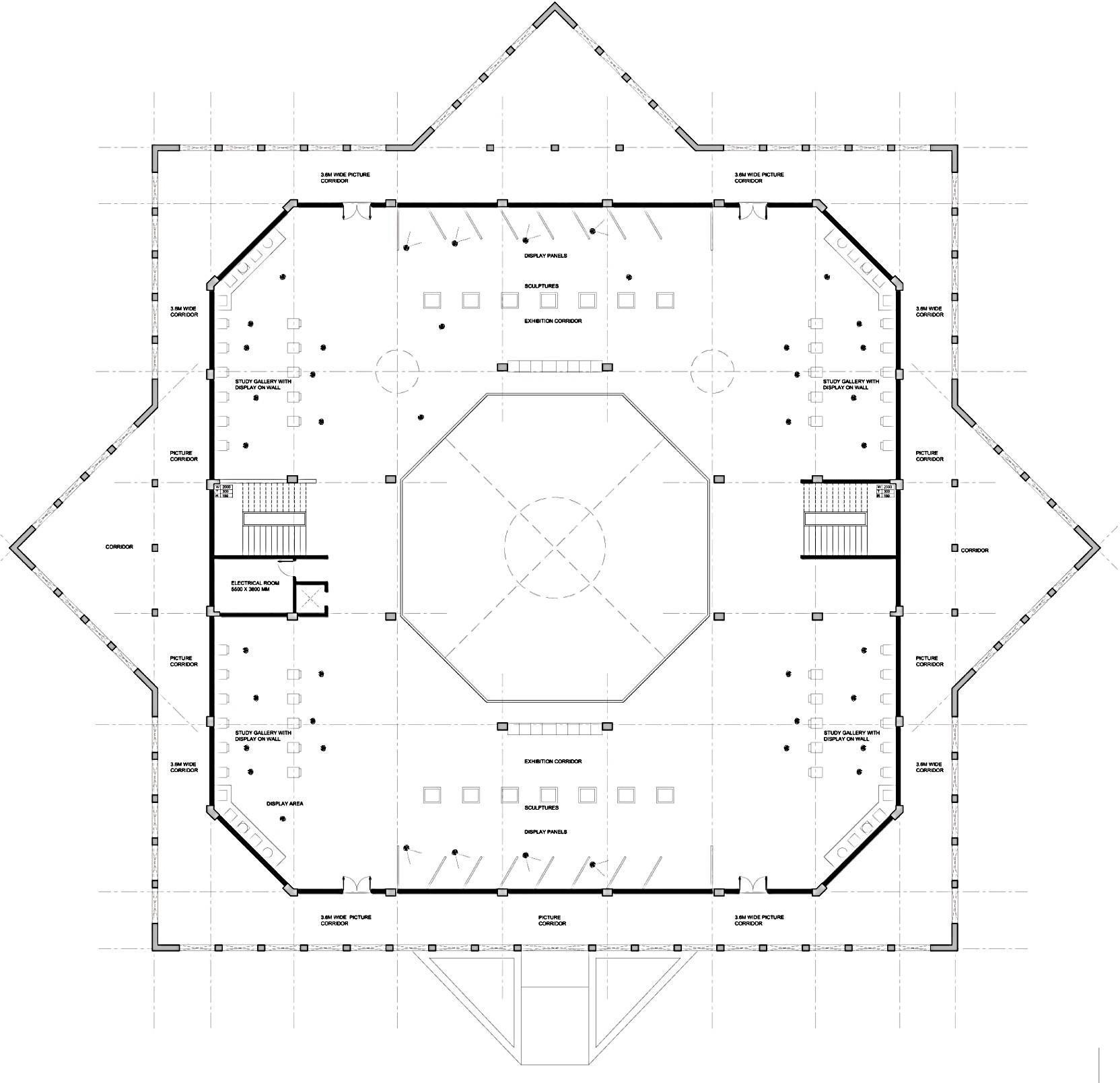 -Planning has been done on the basis of 8 chambers that surround the central space beneath the dome.