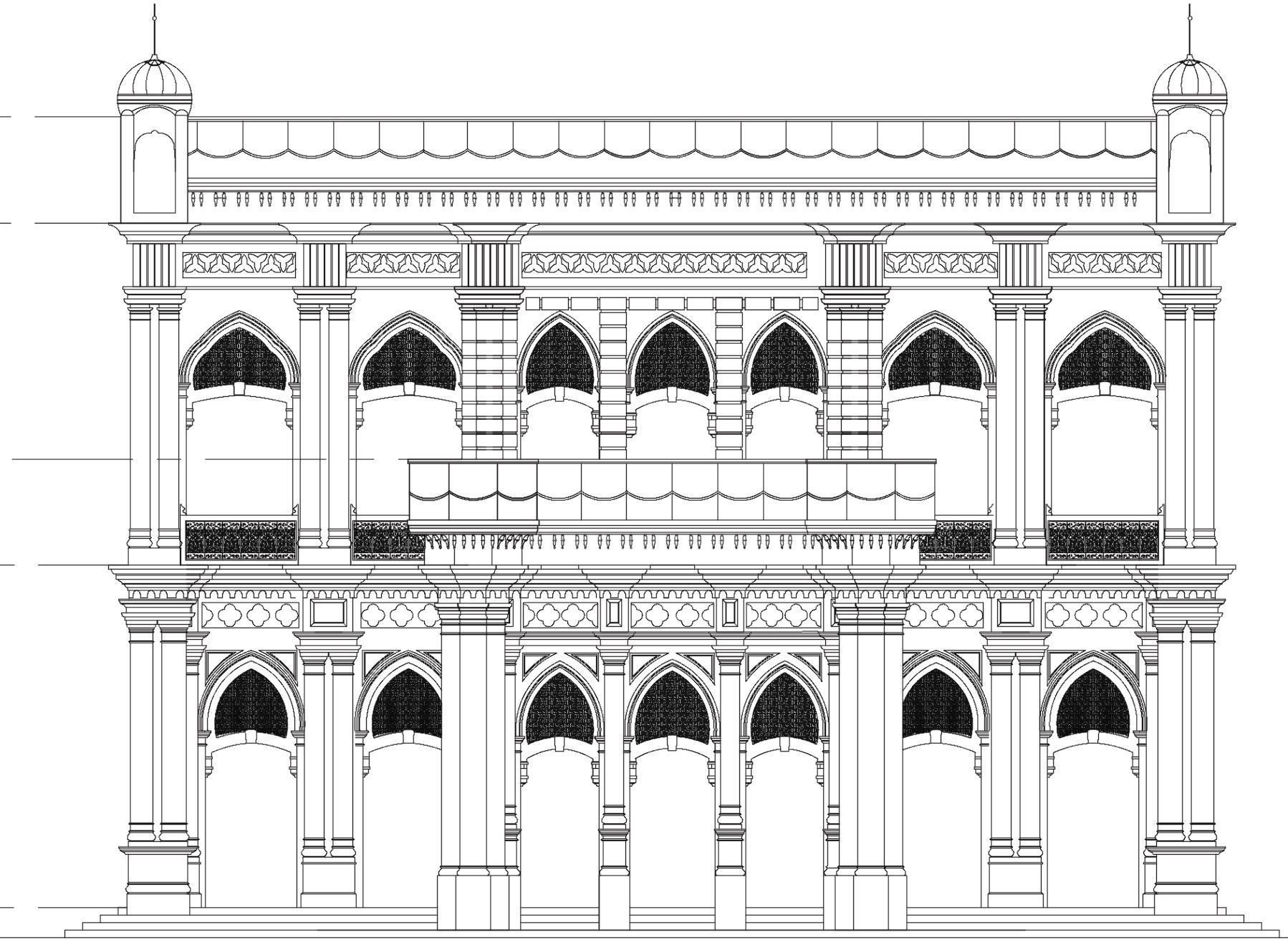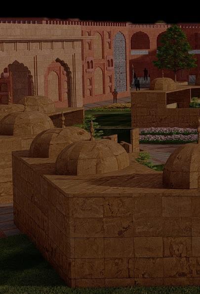 Internal octagon shape is inspired from the nine fold plan of „Taj Mahal‟ which is a typical plan of Mughal architecture The corners of the square are chamfered to form an irregular octagon The internal planning is divided into 8 segments which refers to the term hasht bihisht (eight paradises). Hasht bihisht refers to the eight rooms surrounding the central chamber. The further model is developed in a perfect symmetry faithfully reflected in the elevation and remained true to MughalArchitecture.