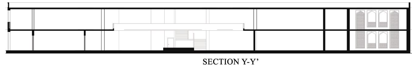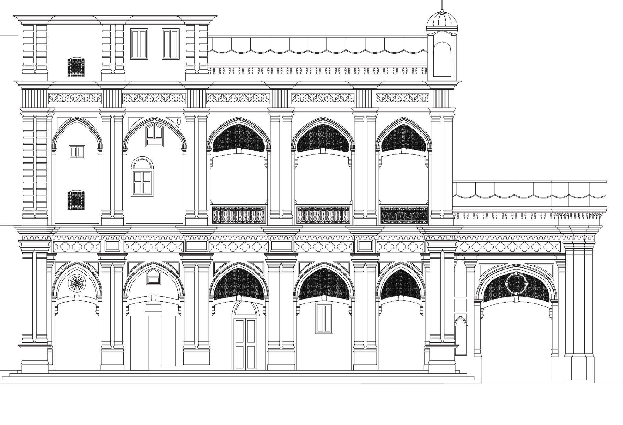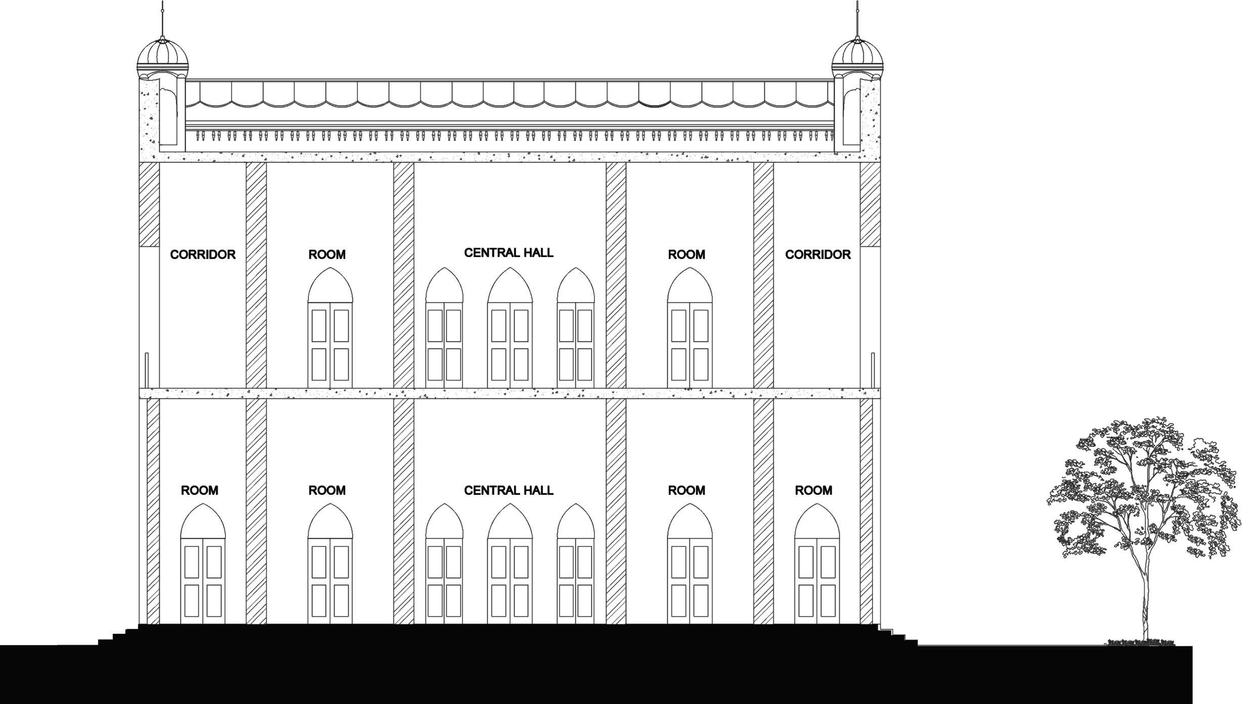 Arch allows entry into the corridor at the ground-floor level. The form of jaali arches is derived by modifying the basic lines of traditional Mughal arches from which light can pass through in the corridors