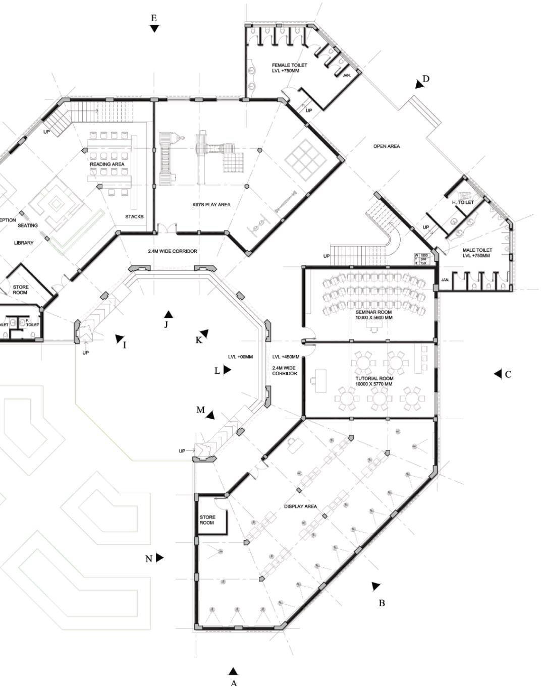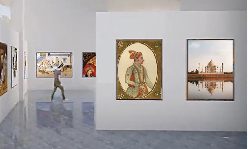 Display areas, study galleries, exhibition galleries and floating article in the centre of the museum has been provided on the ground floor Display areas has been provided where history of Mughal Period is explained in the form of timeline via display panels and display screens