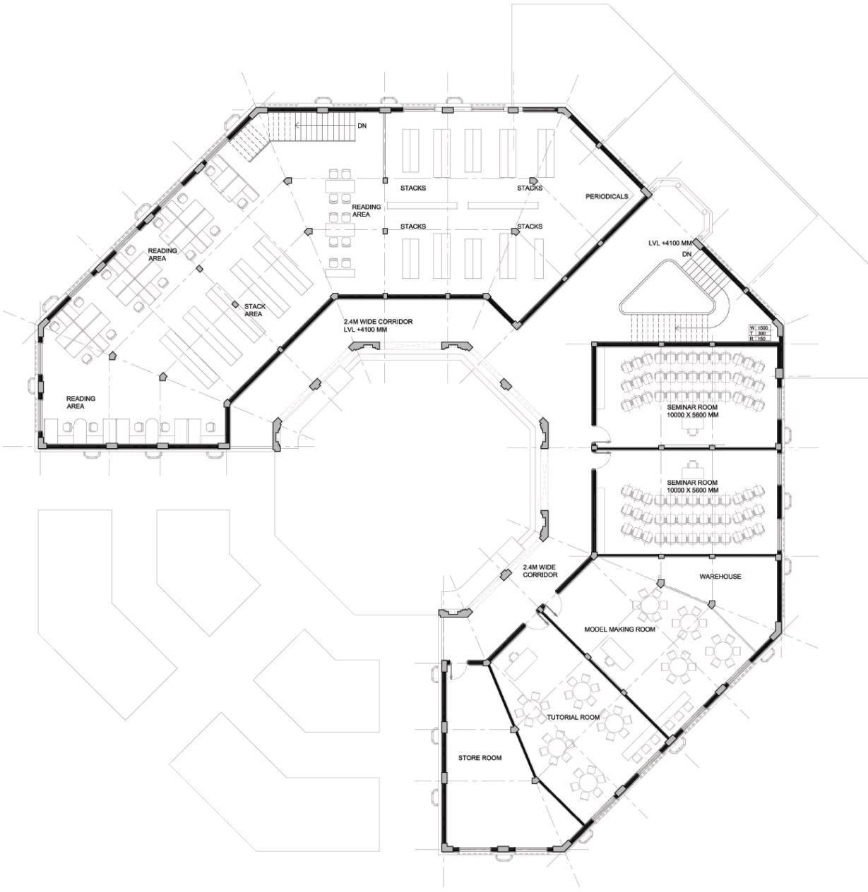 The Nalanda university complex was divided by a central walkway which went from south to North and in the same way site has been divided into central axis as shown in the conceptual sketch from N-S Monasteries were planned leading to central open courtyards Lower storey‟s comprises areas of learning/ instructions and communal worship Upper storey‟s comprises cells for resident students Similarly, central courtyards has been provided with each building and lower part of the site is academic and upper part of he site has been given to residential zone.