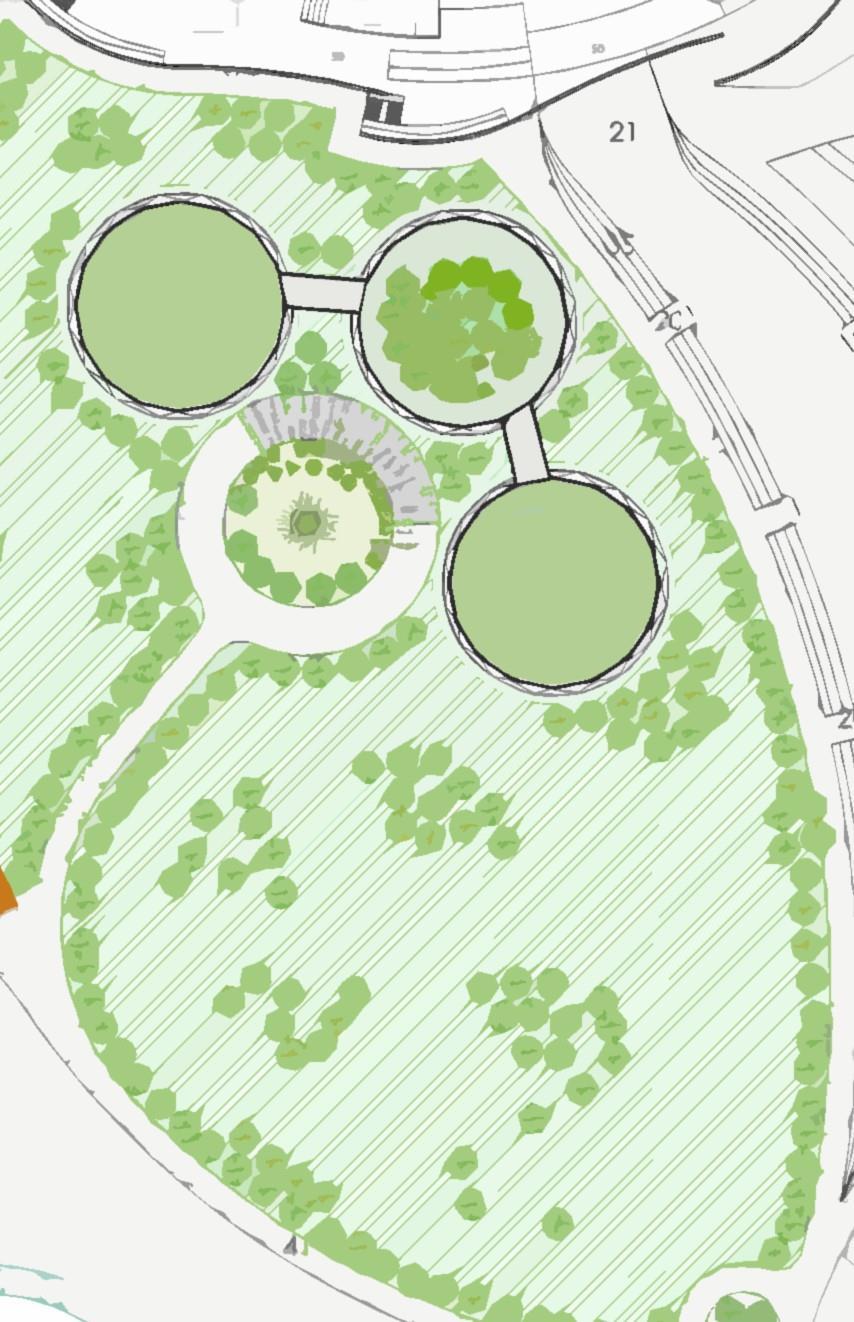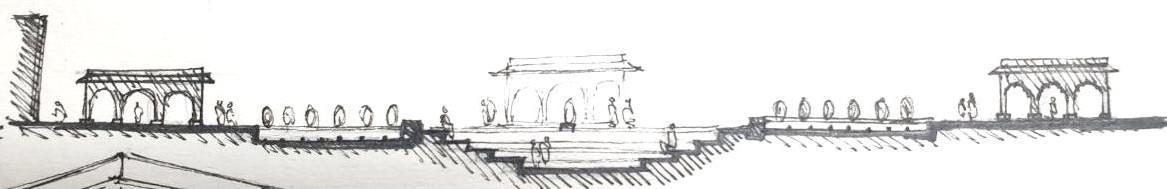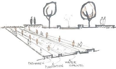 The reference for plantation in site is also extracted from the gardens of Taj Mahal. The combination of fruit bearing trees and non fruit bearing trees is used, representing the living and dead respectively. The various plantation used are
