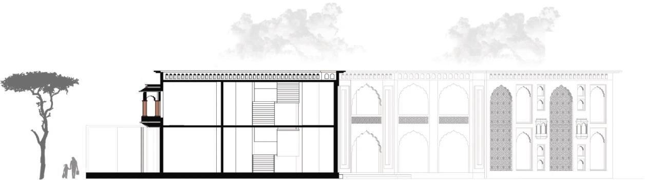 The outer star shape is derived from the geometric patterns of Mughal architecture which acts as corridor.