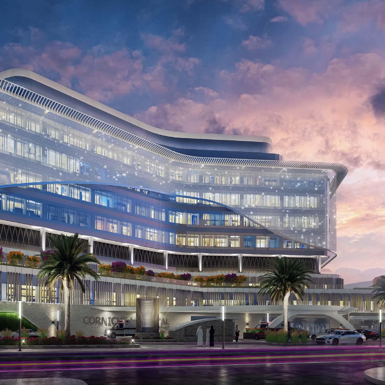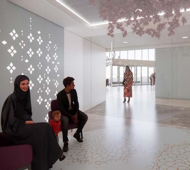 Holistic healthcare for women embraces their sensitivities and thought patterns to create an environment that nurtures and engages the mind, body, and spirit in the healing and birth processes. In collaboration with the Morgan Group and Marco Graziano Design Studio, IKM designed the new women’s hospital to reflect the top quality and compassionate care provided to patients within. Whether a woman is at the facility to celebrate the birth of her child or to address a medical need, this facility, located in Abu Dhabi, caters specifically to the unique health needs of women in a comfortable and inspiring environment. Spread over nine floors, the new hospital replaces an existing aged facility and supports modern treatment modalities associated with an In Vitro Fertilization Clinic, Outpatient Care Clinic, ICU, Pharmacy, four Operating Rooms, fourteen large Birthing Rooms, 52 NICU Rooms, 35 Special Care Baby Unit Rooms, 28 Post-Partum Rooms, and Isolation Patient Rooms. Additionally, dedicated areas for royal patrons are included along with integral parking, lush landscaping, and culturally appropriate amenities.