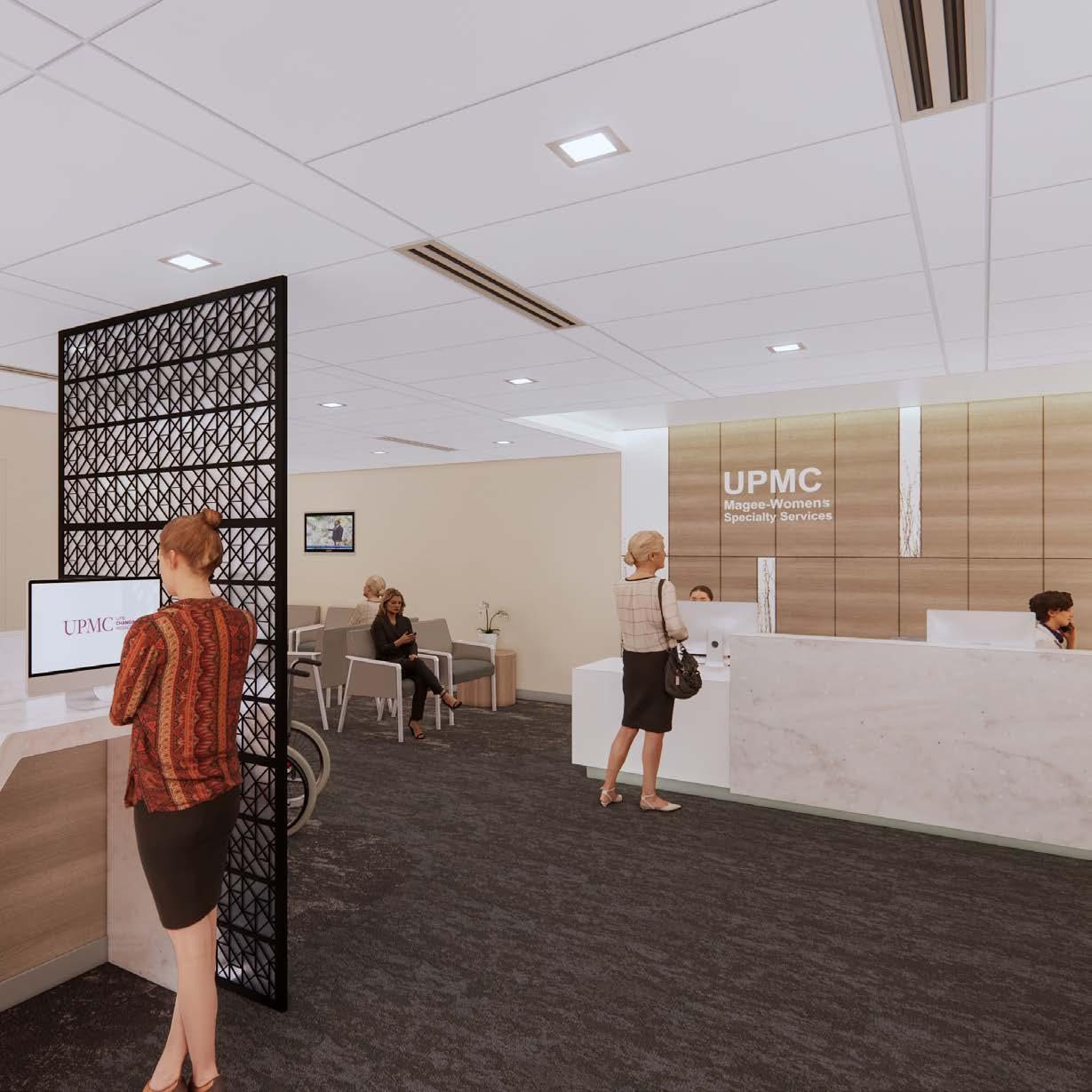 Common threads of design aesthetic tie the departments within the Outpatient Center together while creating separate branding identities for each practice suite. The unique features of the Breast Center encourage female patients to feel at home in this clinical environment. The design creates a superior patient experience to support the growing healthcare needs of Pittsburgh’s South Hills residents. Service was uninterrupted throughout the design and construction of this multiphase renovation.