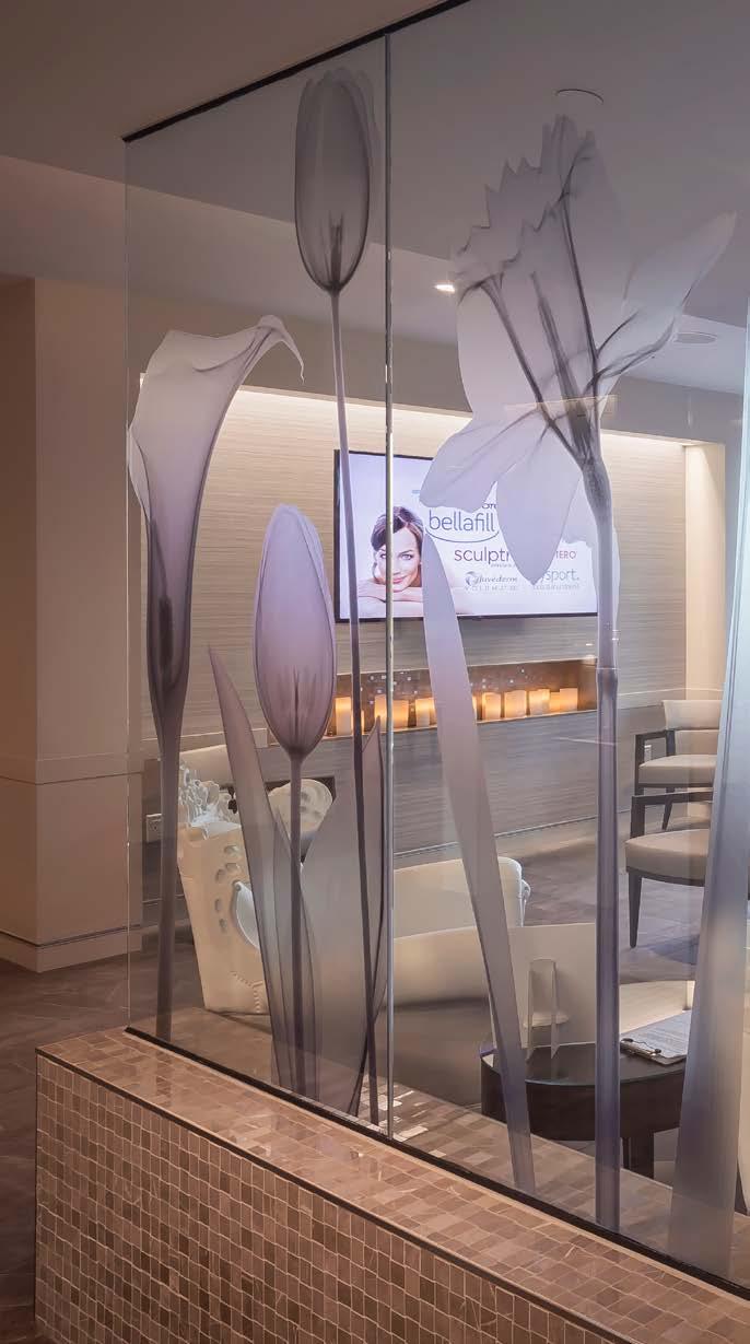The key to making this a place of respite for female patients is in the intricate textures incorporated throughout the office. The imported Italian wall tile is strategically lit to cast mesmerizing shadows across the surface. A glass divider blocks sound from travelling across the waiting room and displays large-scale graphics of tulips and daffodils. The floral theme continues in patterned exam room walls and corridor accents. Indirect lighting from an organic cove in the bulkhead glows over soft furniture in the waiting room. A soothing neutral palette provides cohesion between the waiting area and clinical spaces.