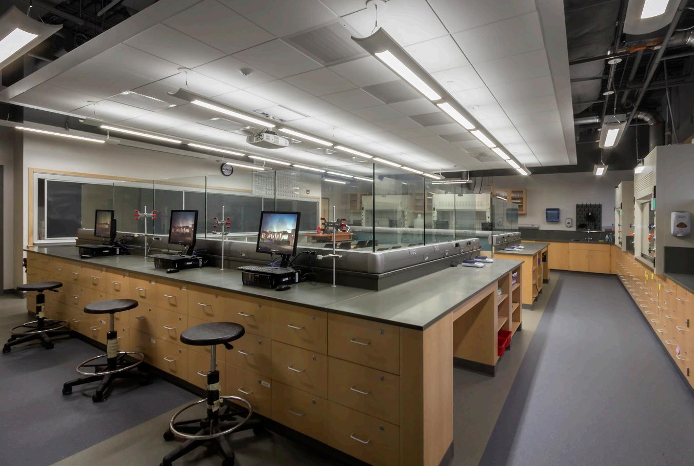Left: Lab space, as seen in the Pitt Johnstown Engineering & Science Building, provides a different kind of learning environment outside of the traditional classroom. In these spaces, more control and organization is needed based on the program requirements.