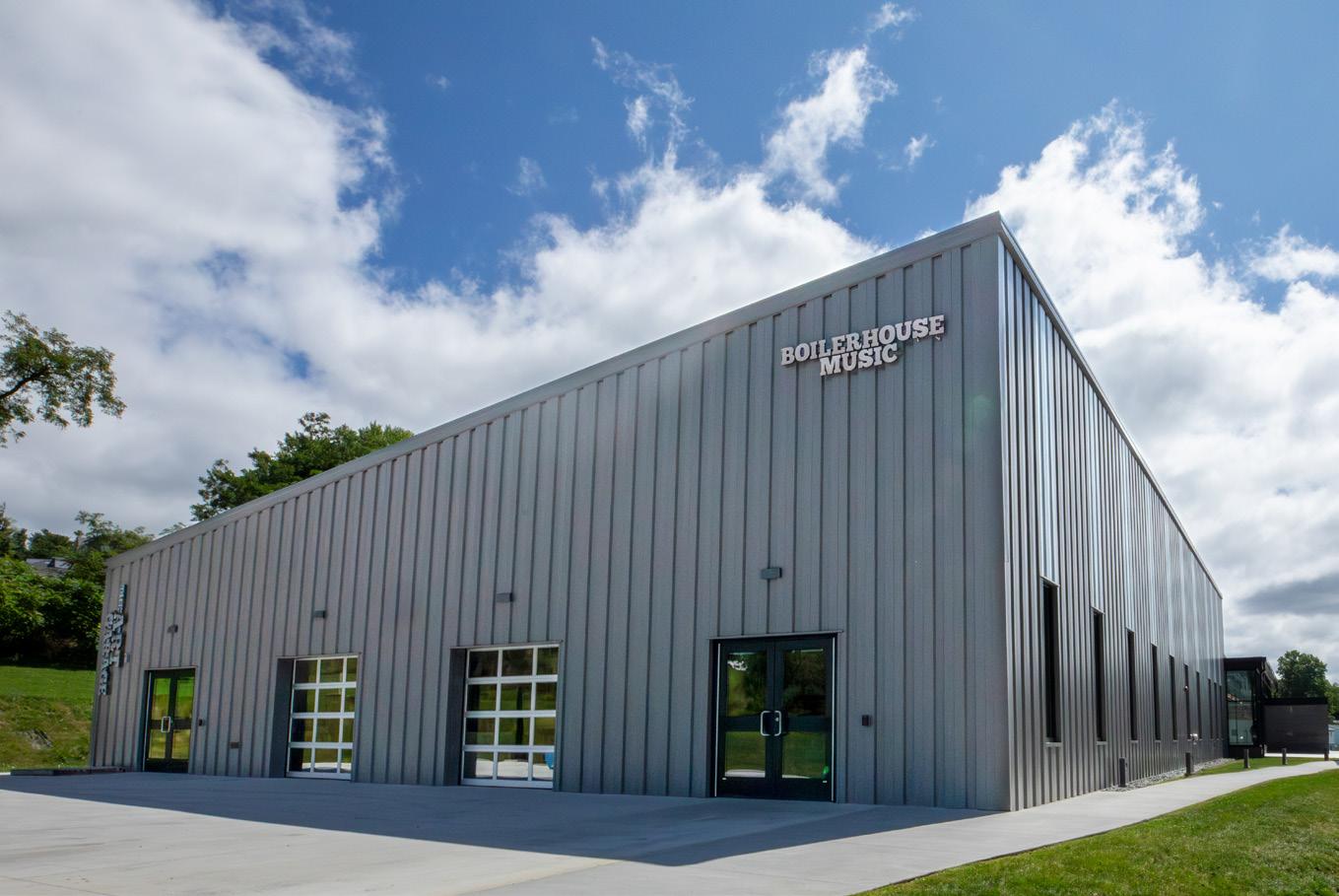Below: Traditional construction allows for a high level of customization in the performance and pre-function spaces, while pre-engineered metal building (PEMB) offers flexibility for future modifications as the fine art program evolves.