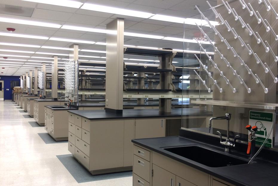 Below: The program includes spaces like the chemistry instructional lab shown below and also consisted of engineering instructional labs, research lab, classrooms, lecture halls, and 38 faculty offices and related work spaces.