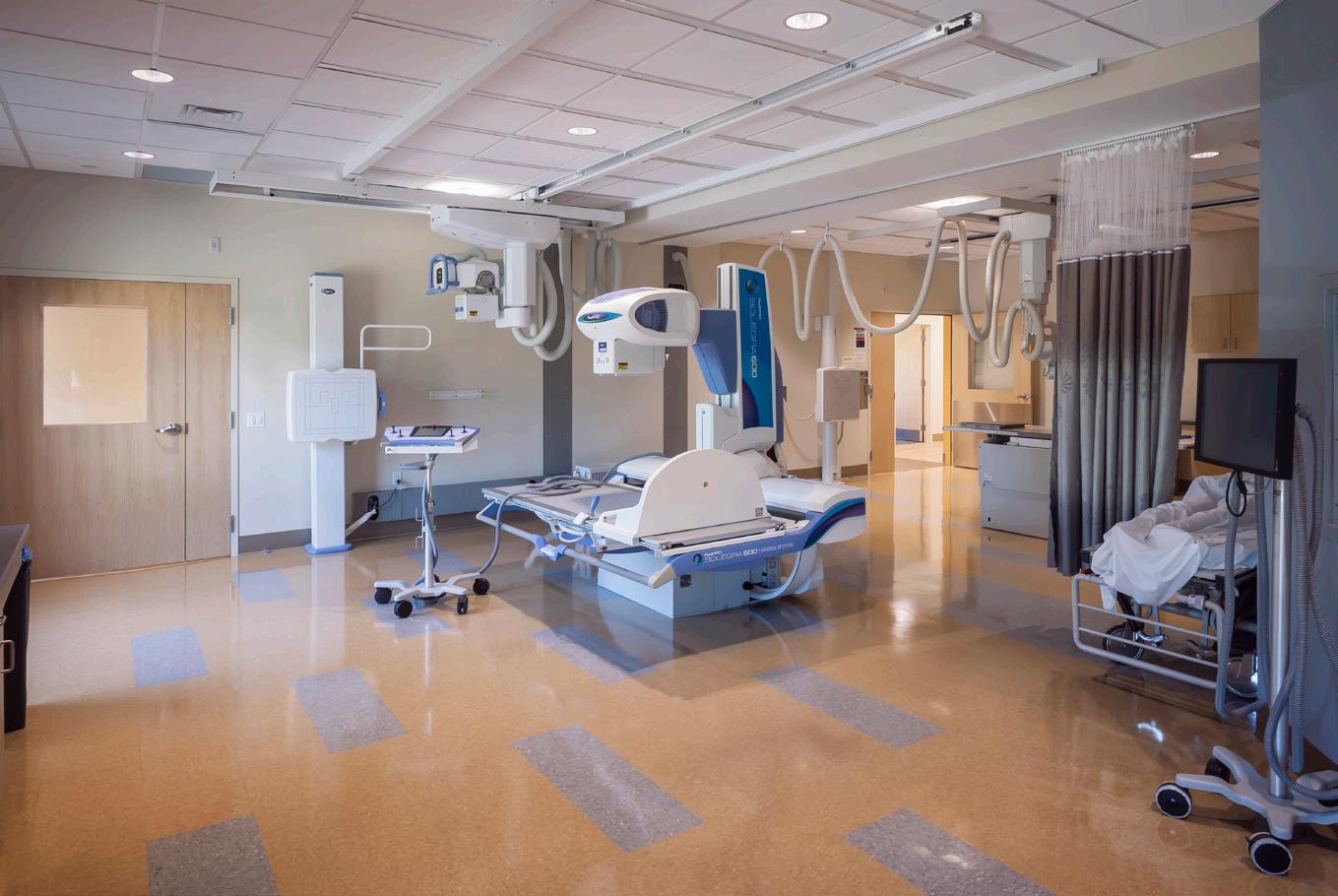 Left: The new simulation lab space is dedicated to the radiation technologist program and is just one among multiple simulation areas that support the complex.