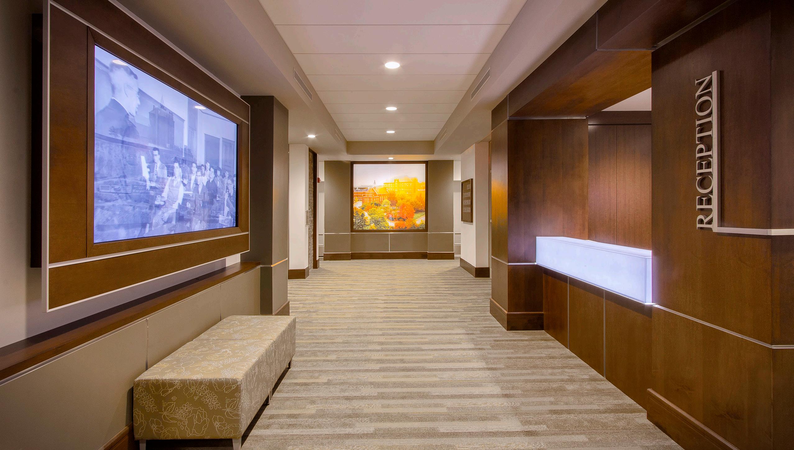 Left: IKM identified that first impressions were particularly important to stakeholders for recruiting and fundraising efforts. Knowing this, we selected the vibrant school colors to create an entry sequence that speaks to the high-tech philosophy of the program.