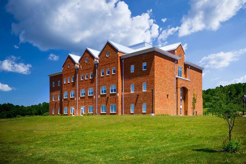 Left: The Grove City College Residence Hall demonstrates a modern residential style while being complementary to the campus context. The central hall provides a common social space between the men’s and woman’s wings that serves both student and alumni events.