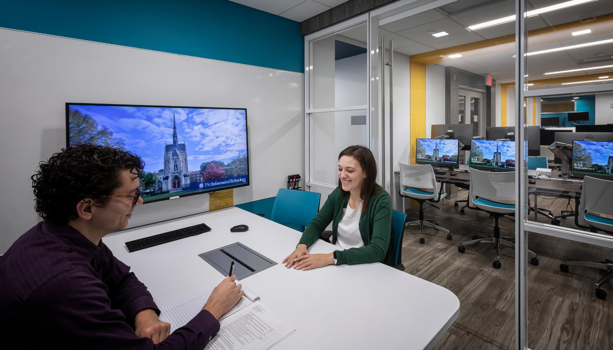Left: Small niches are strategically located within the Pitt Computing Labs to promote collaboration outside of the classroom.