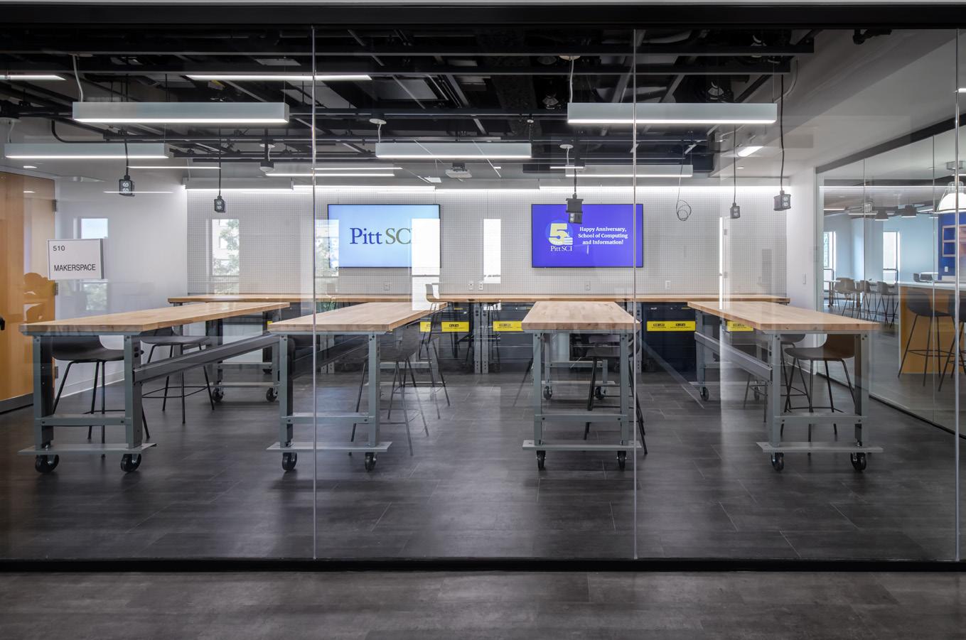 Previously spread out over multiple buildings, this renovation project brought faculty and students from the Pittsburgh School of Computing and Information (SCI) together in a single location. The space is intended to encourage flexibility, innovation, experimentation, and collaboration