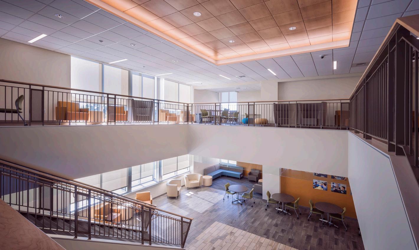 The expansion included lecture space as well as critically needed additional lab space, classroom, office, and, perhaps most importantly, communal learning space. The demand and the changing areas of health science study had outpaced the existing facility.