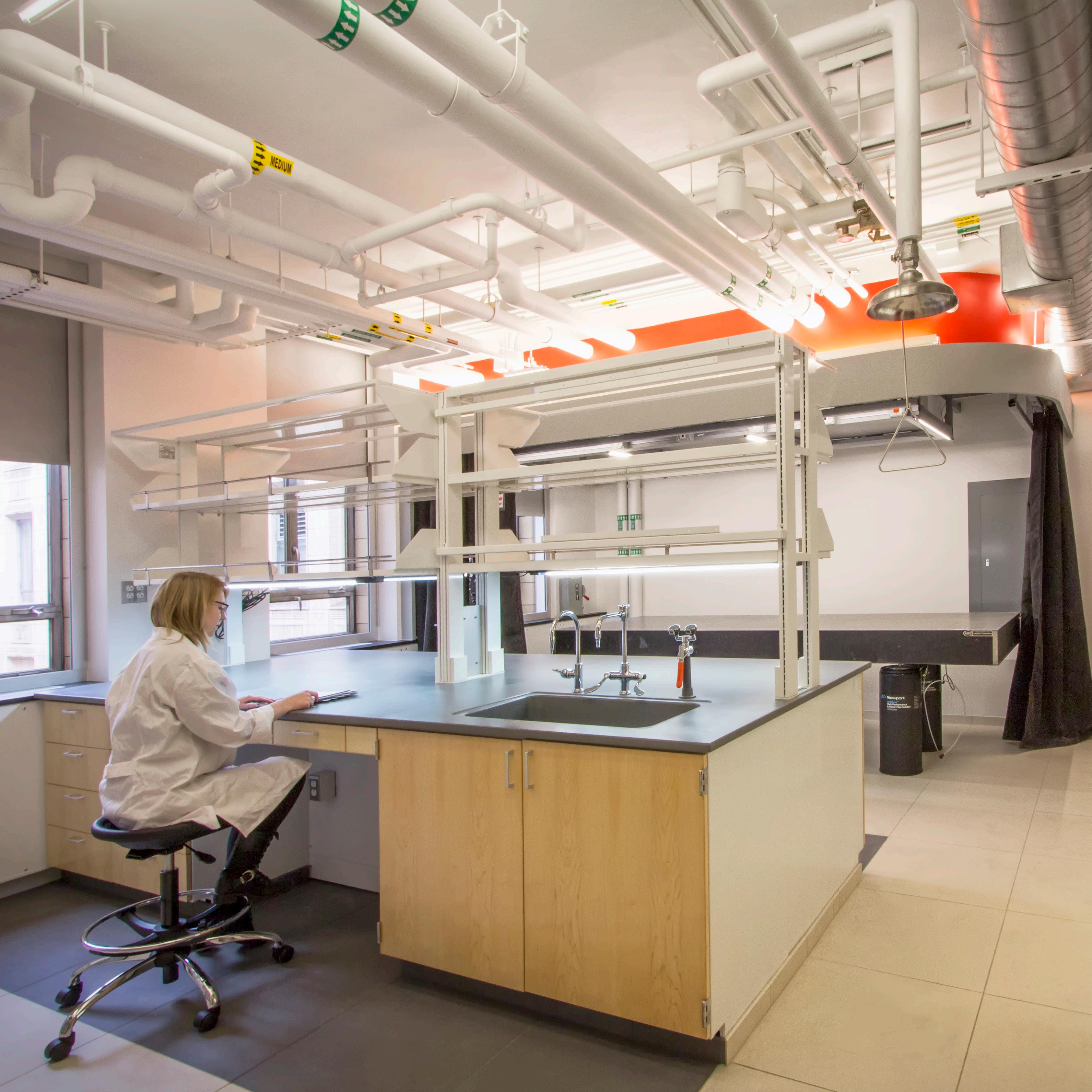 IKM was retained renovate lab spaces in the southwest 8th floor of the Mellon Institute into a pyrophoric lab space for Dr. Kevin Noonan that includes flexible lab benches, seven fume hoods, an instrument room, an office, student areas, and a break room.