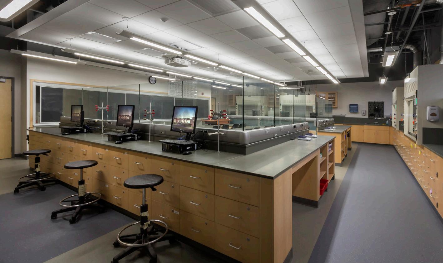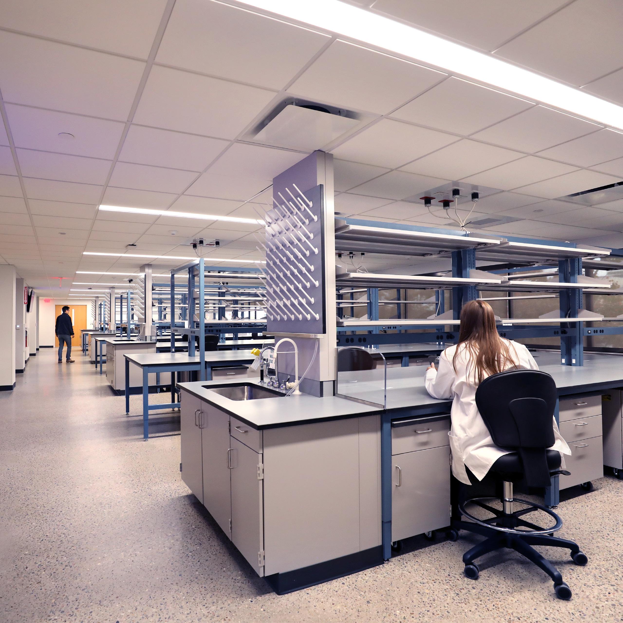 The project consisted of a 63,300-squarefoot renovation to encompass laboratories, classrooms, offices, storage, student lounges, and club-designated spaces for the Engineering Technology and Chemistry departments. The program included engineering instructional labs, chemistry instructional and research space, classrooms, lecture halls, 38 faculty offices, and related workspaces.