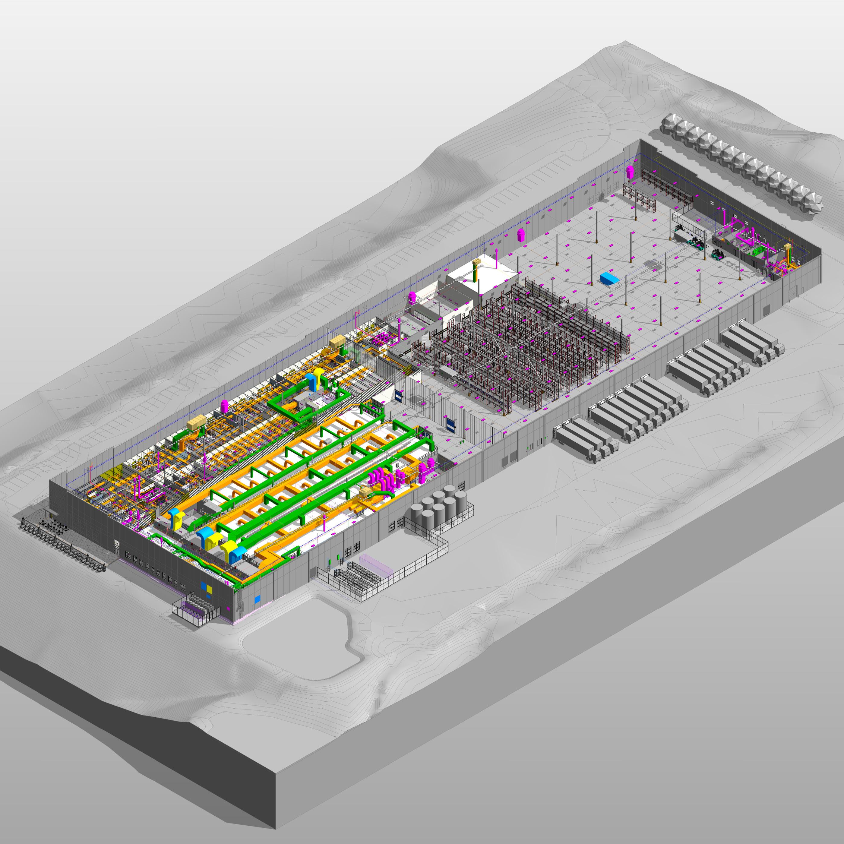 The plant, which is more than double the size of the existing facility, increases production capacity significantly and provides space for new program areas including repair and refurbishment, research and development labs, an expanded metrology lab for quality assurance, an open office environment on one floor level with conference and meeting rooms, collaboration spaces, and flexibility built-in for future growth. A large employee canteen, which accommodates quarterly corporate all-hands town-hall style meetings, is included, as well as a large warehouse storage component, finished goods, distribution hub, and 18 loading dock bays.