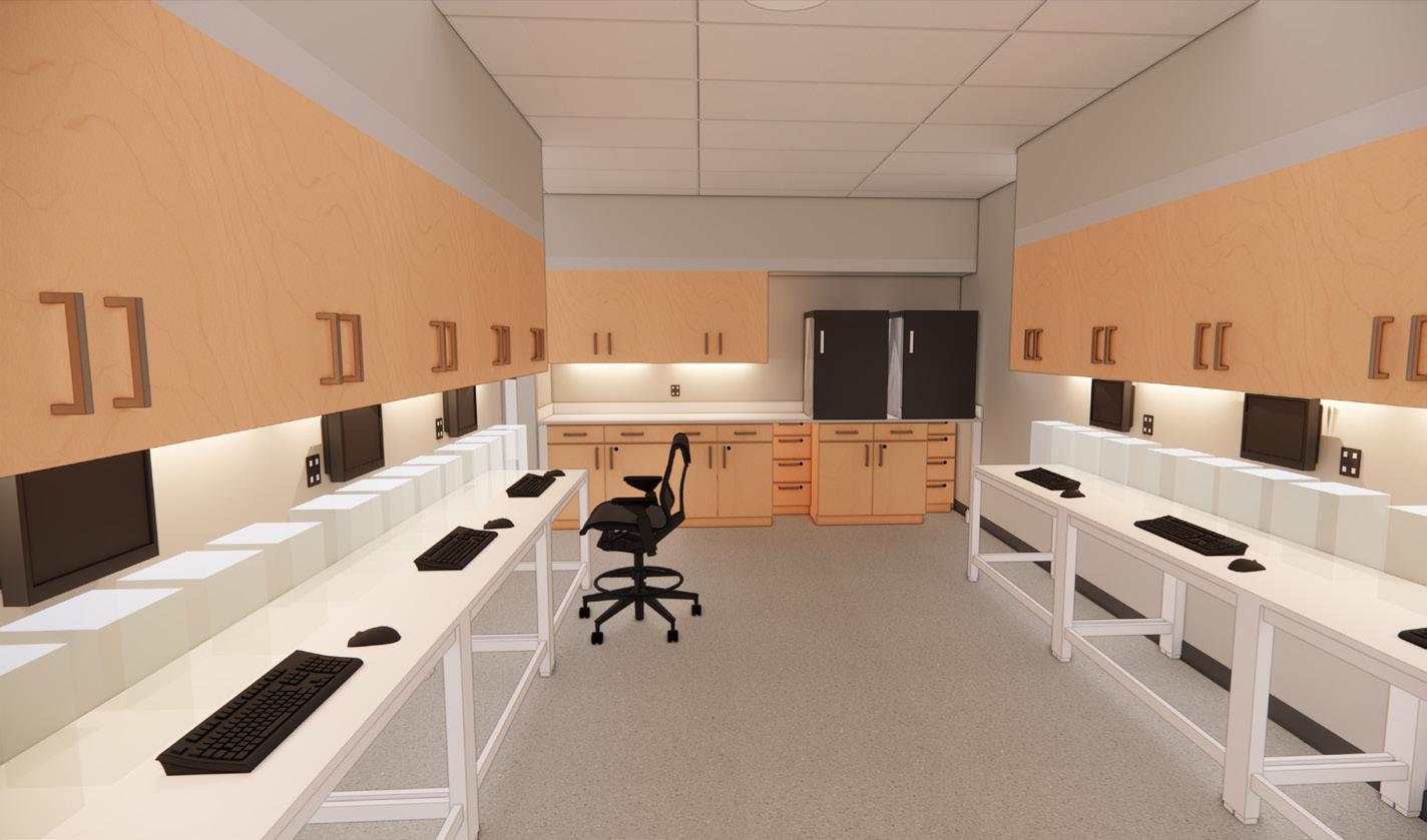 Carnegie Mellon University’s Yttri Lab project included the renovation of four existing separate lab spaces to create a highly computational lab and research space. The program included areas for students to work, three separate labs including with rooms for mice, and an office. The head professor stressed the need for space to collaborate with his team, furniture that could be reconfigured easily, and fully cleanable finishes within the lab spaces.