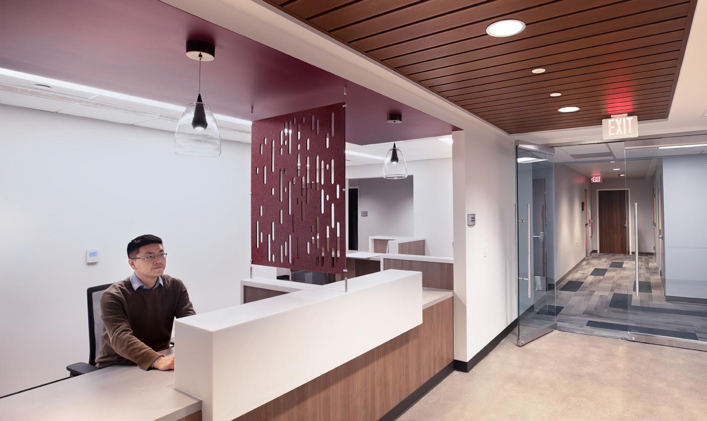 The elevator lobby and the corridor leading to the lab underwent finish upgrades and other improvements so that these areas express to those entering that they are coming to an educational experience. Neurological slides are also used as art throughout the space.