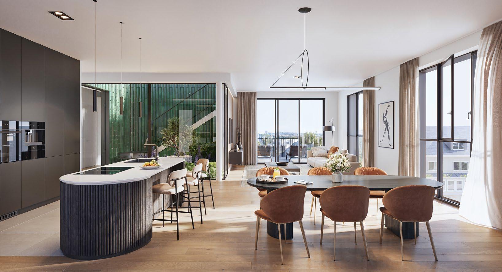 Les circulations et noyaux d’ascenseurs prolongent cette écriture dans une harmonie millimétrée, où chaque détail participe à l’expérience résidentielle.