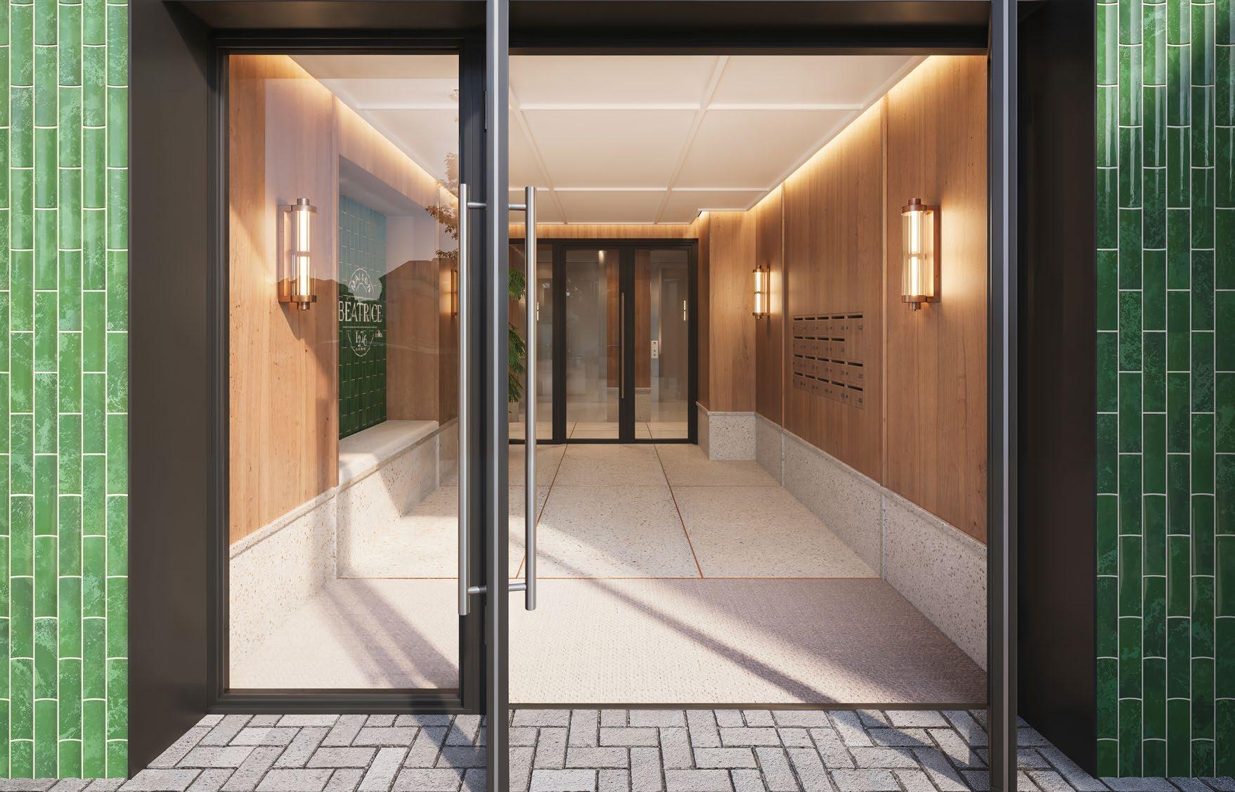Dès le seuil franchi, Maison Béatrice révèle son caractère. Le hall d’entrée s’inspire de l’élégance Art déco, pensé comme un lieu de transition où matières nobles et lignes graphiques se rencontrent.