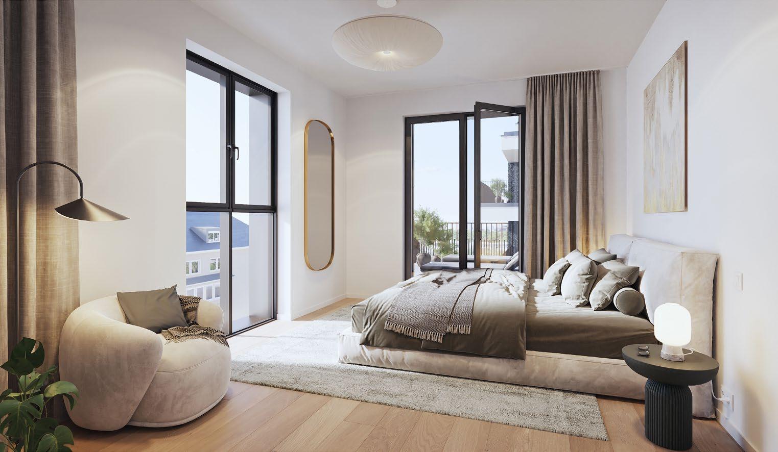 Les loggias, dont la profondeur peut atteindre 4 mètres, prolongent généreusement les séjours vers l’extérieur et deviennent de véritables pièces, traitées avec la même exigence de finition que les intérieurs.