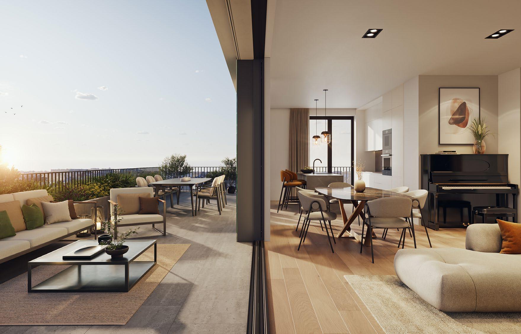 ⋅ L’un déploie près de 111 m² intérieurs, prolongés par une terrasse plein ciel de 126 m².