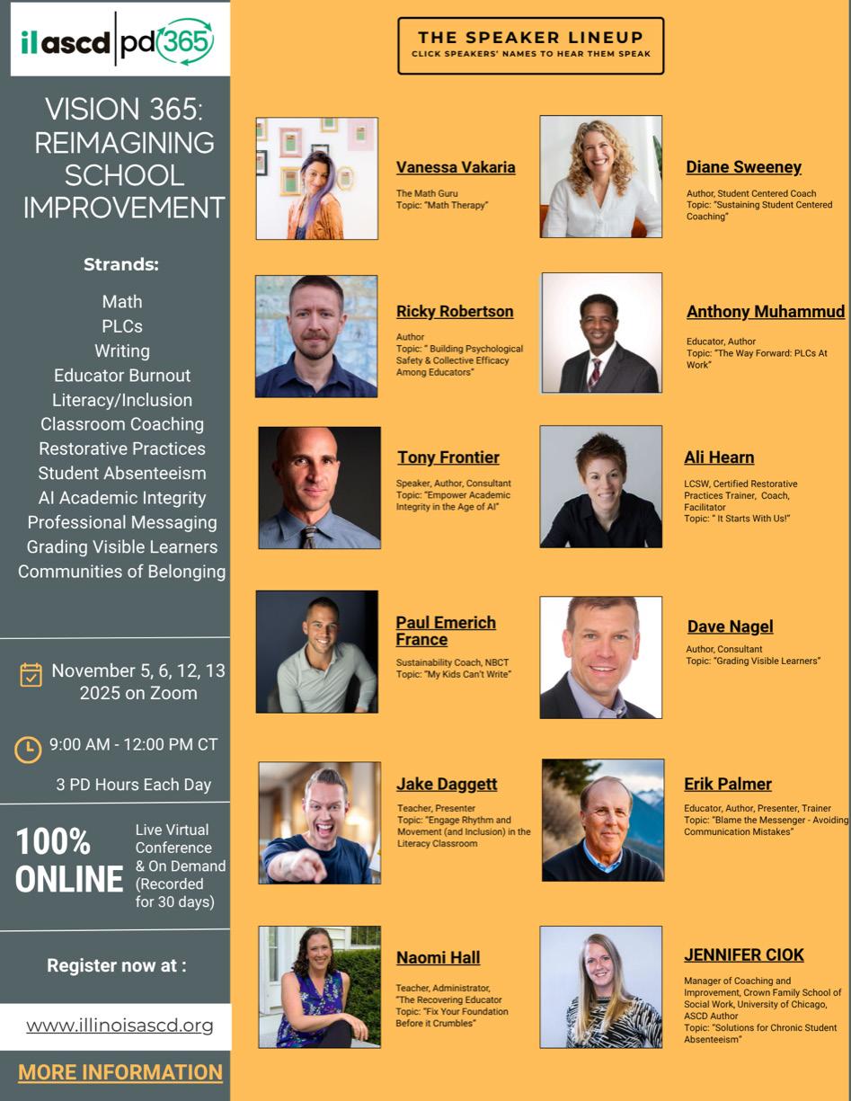 Our speaker lineup is packed with leading voices in education: Anthony Muhammad, Diane Sweeney, Tony Frontier, Dave Nagel, Ricky Robertson, Ali Hearn, Vanessa Vakharia, and many others.
